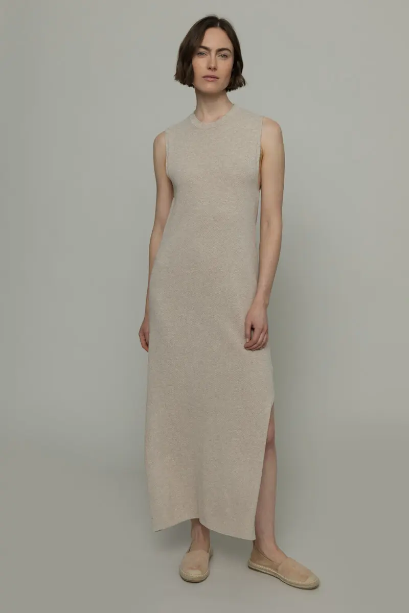 Atrask ilgą berankovių suknelę, kuri ne tik pabrėš tavo stilių, bet ir atspindės atsakingą požiūrį į gamtą. Pagaminta iš 100% perdirbtos ir ekologiškos medvilnės. Medvilnės atraižos rūšiuojamos pagal spalvą todėl nereikia siūlų dažyti dar kartą. Ši suknelė – tai pasirinkimas tiems, kurie vertina tvarumą ir ekologiją.
